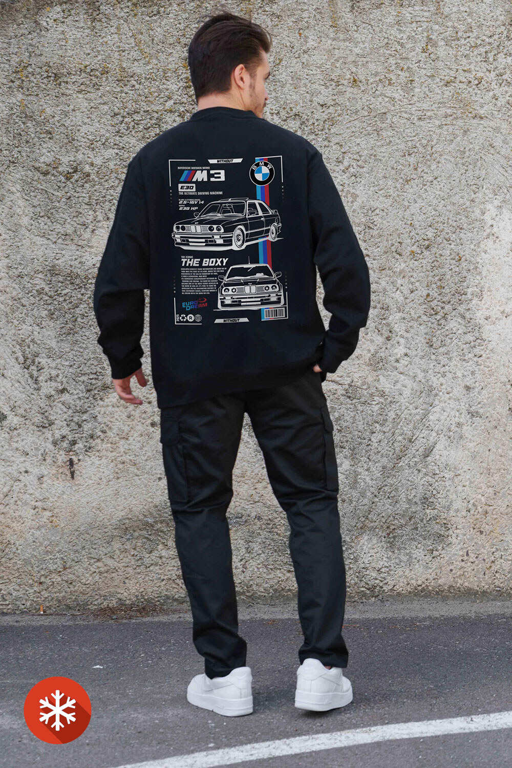 - Minimalistyczny design z naciskiem na jasny nadruk nadaje swetrowi wyjątkowego charakteru.