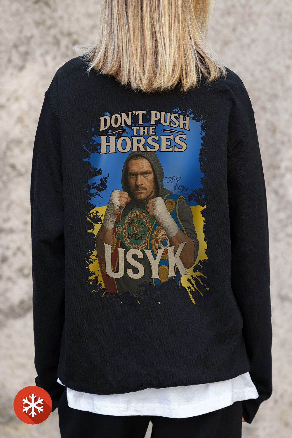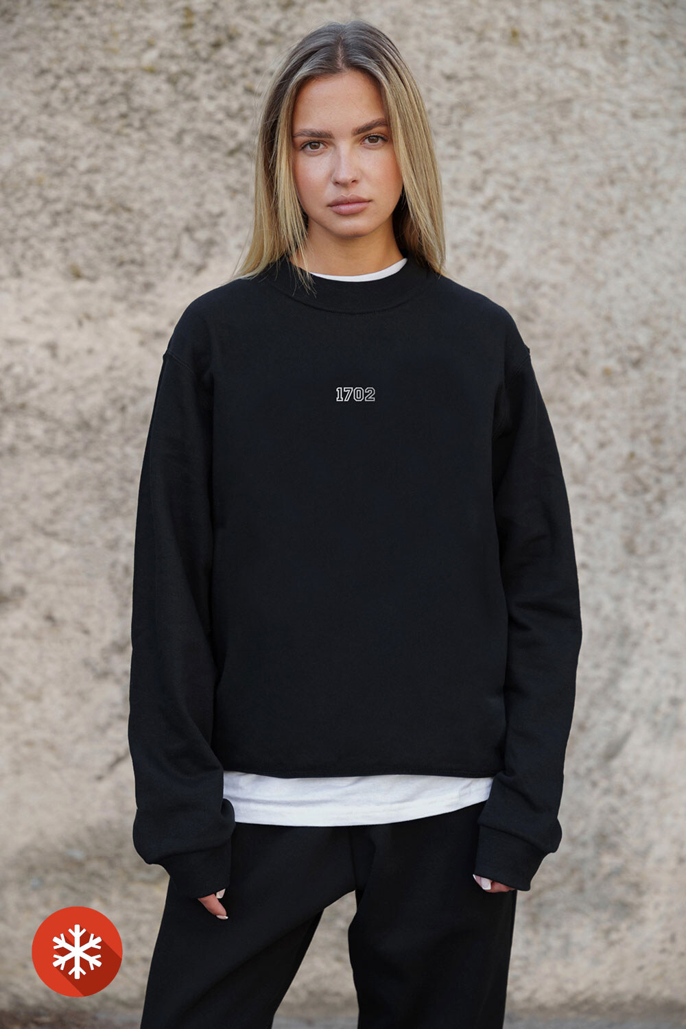 - Minimalistyczny design z naciskiem na jasny nadruk nadaje swetrowi wyjątkowego charakteru.