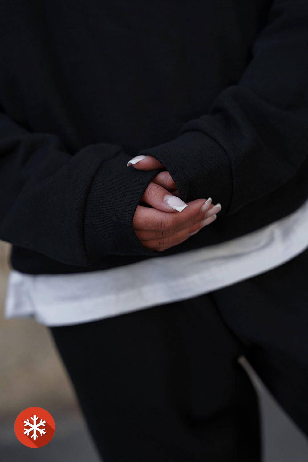 - Kangurkowe rękawy z gumką.
