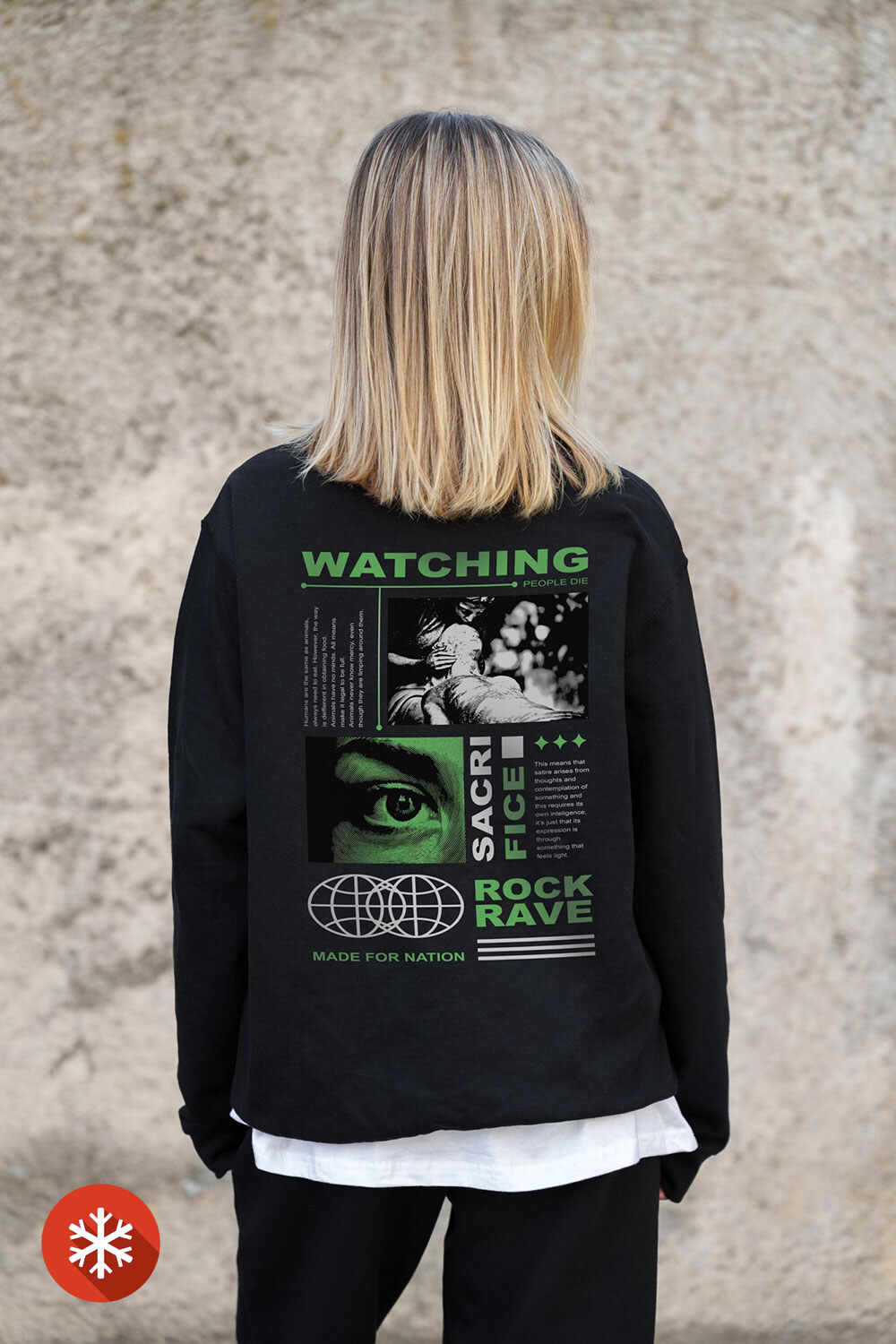 Женский Утепленный Оверсайз Свитшот На Флисе С Принтом Watching Black Without 8055677