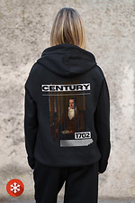 Damska ocieplana bluza z kapturem na zamek błyskawiczny z polaru z nadrukiem Century Kane w kolorze czarnym Without 8055793