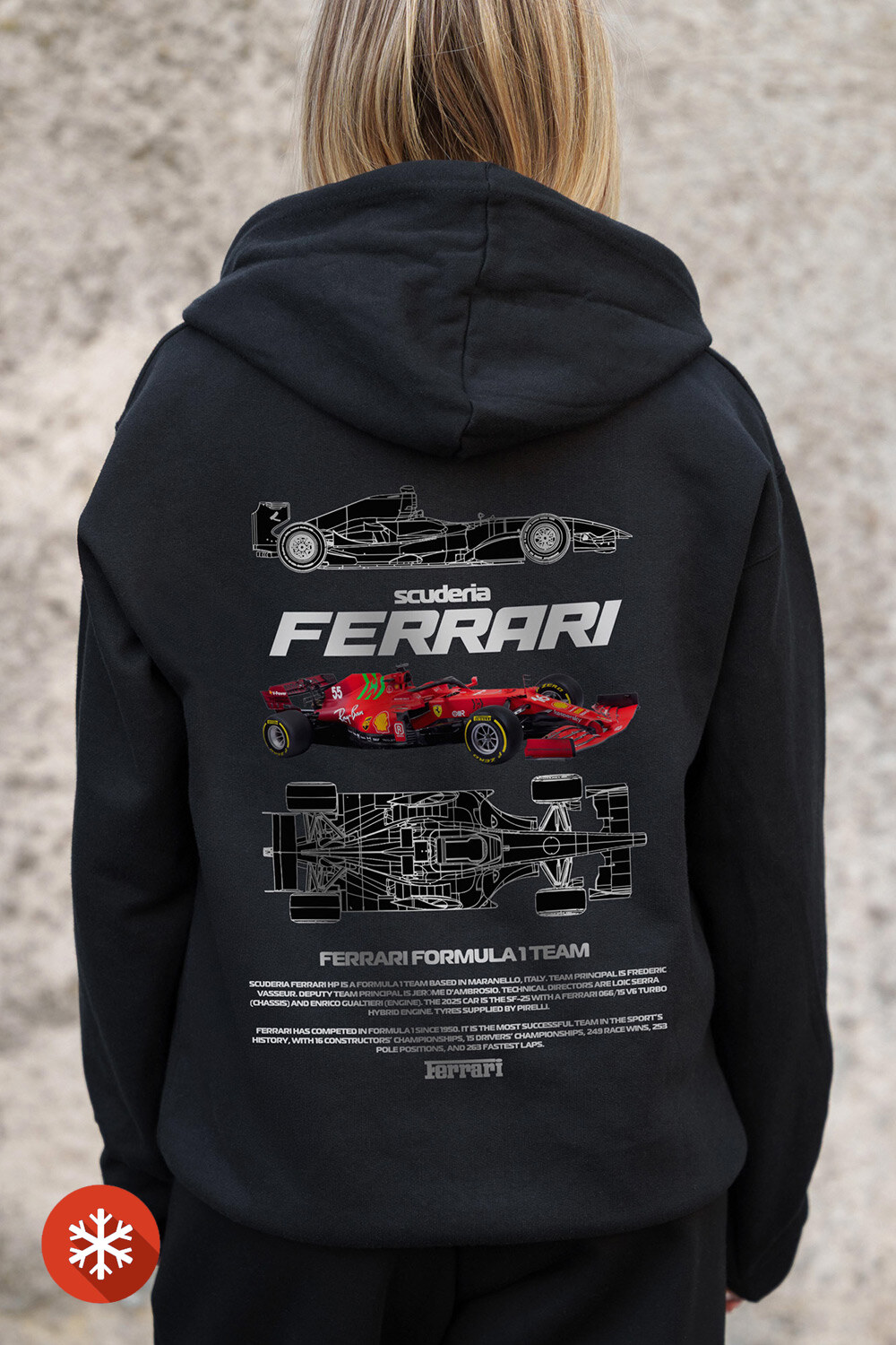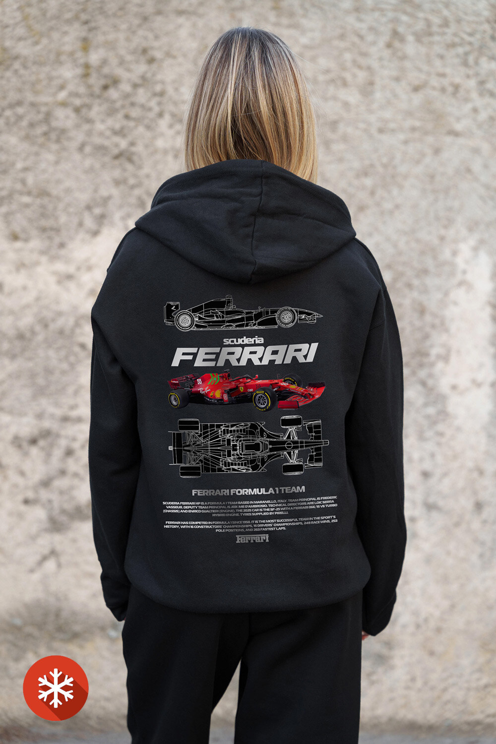 Damska ocieplana bluza z kapturem na zamek błyskawiczny z polaru z nadrukiem Ferrari Kane Black Without 8055813