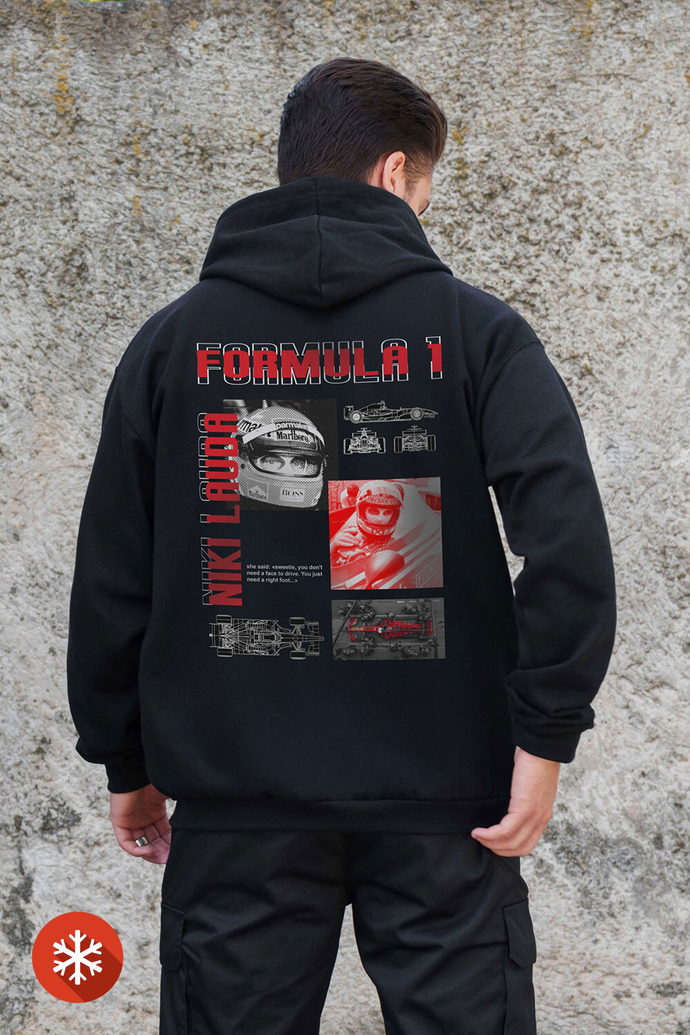 Męska ocieplana bluza z kapturem na zamek błyskawiczny z polaru z nadrukiem Lauda Kane Black Without 8055830