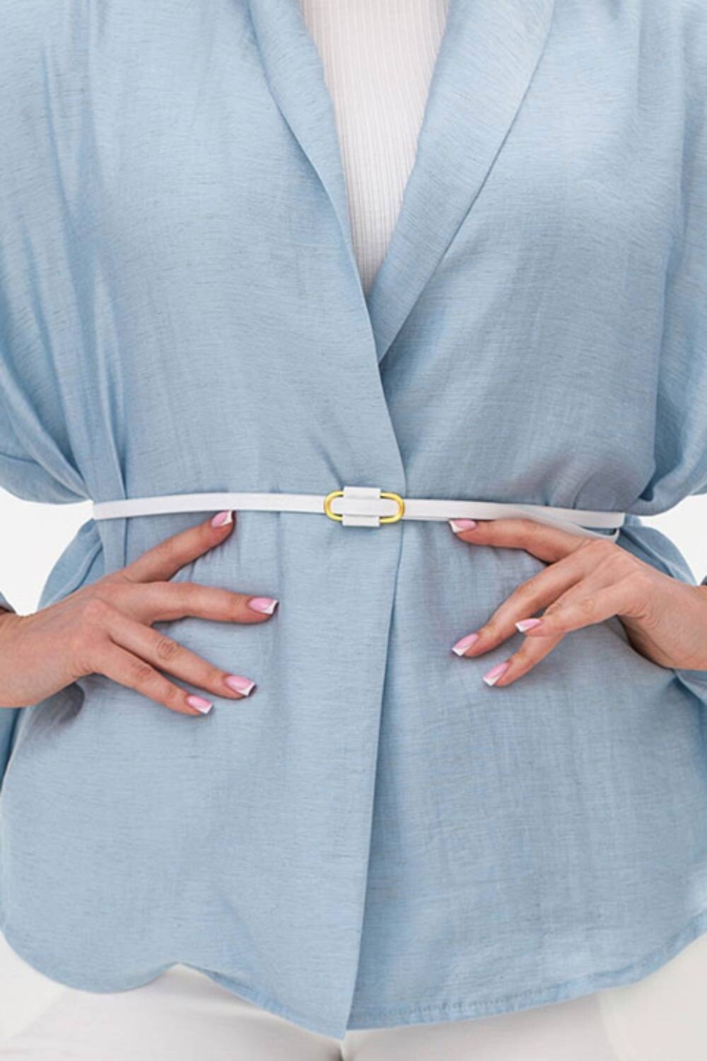 Pasek damski wykonany z naturalnej białej skóry. Garne 3300224