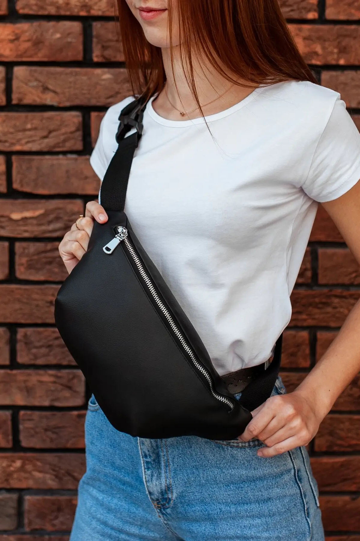 Черная поясная сумка бананка с карманом на замке SGEMPIRE 8015525