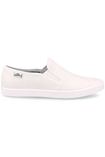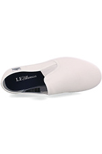 Women's leather slip-ons in cappuccino color.