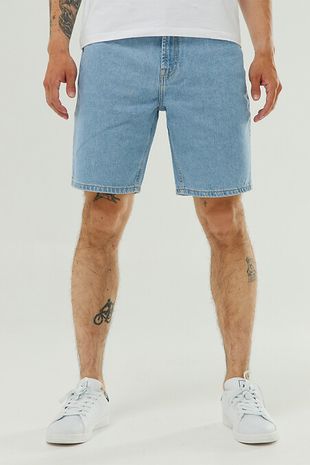 - Деловые. Купить мужские шорты недорого этого типа предпочитают офисные сотрудники в теплое время года. В эту категорию вошли и строгие модели, подходящие в комплекте с костюмами, так и простенькие темно-синие джинсовые варианты без броских деталей.