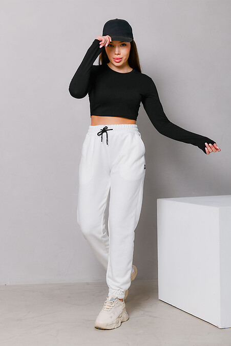 Женские спортивные штаны белого цвета из хлопчатобумажной плащевой ткани