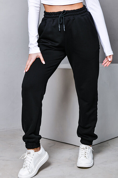 Женские спортивные брюки черного цвета из хлопчатобумажной плащевки