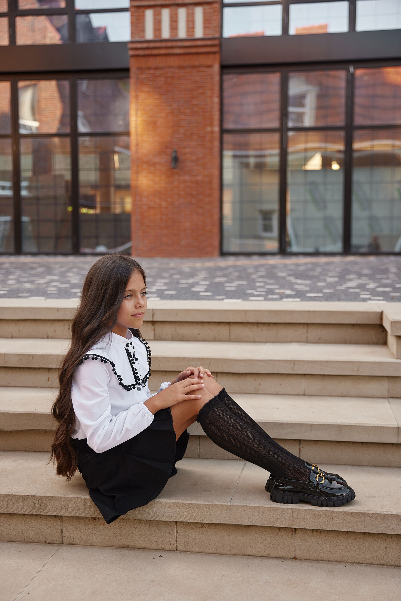 Podkolanówki dziecięce ażurowe, wykonane ze 100% bawełny. Ozdobiona u góry ażurową gumką, która pięknie uzupełnia podkolanówki. Dobrze dopasowują się do nogi i mają dzianinowy zapiętek. Rozmiar zależy od rozmiaru buta.