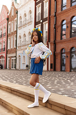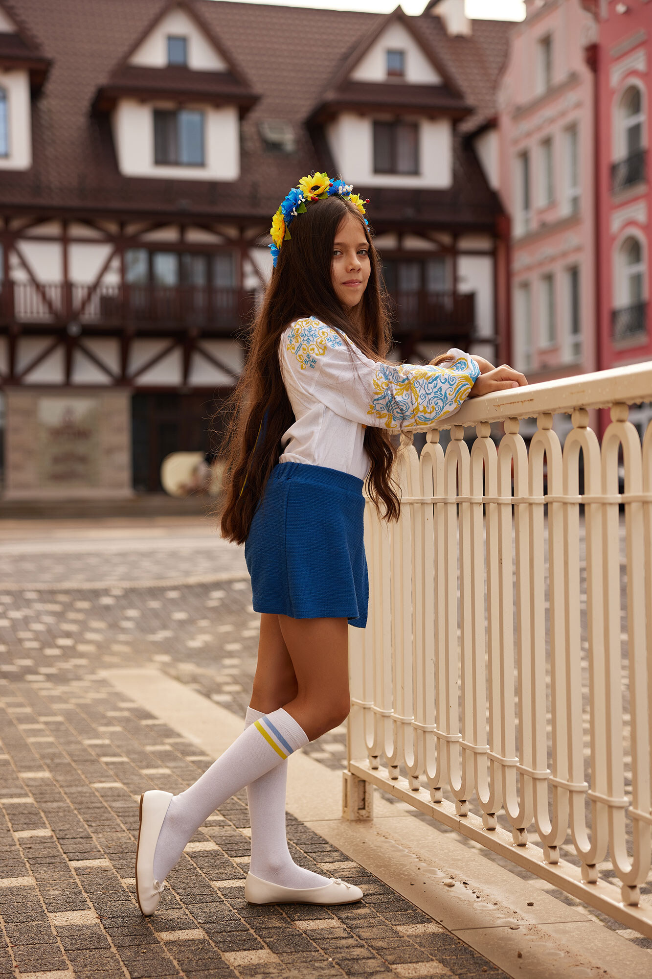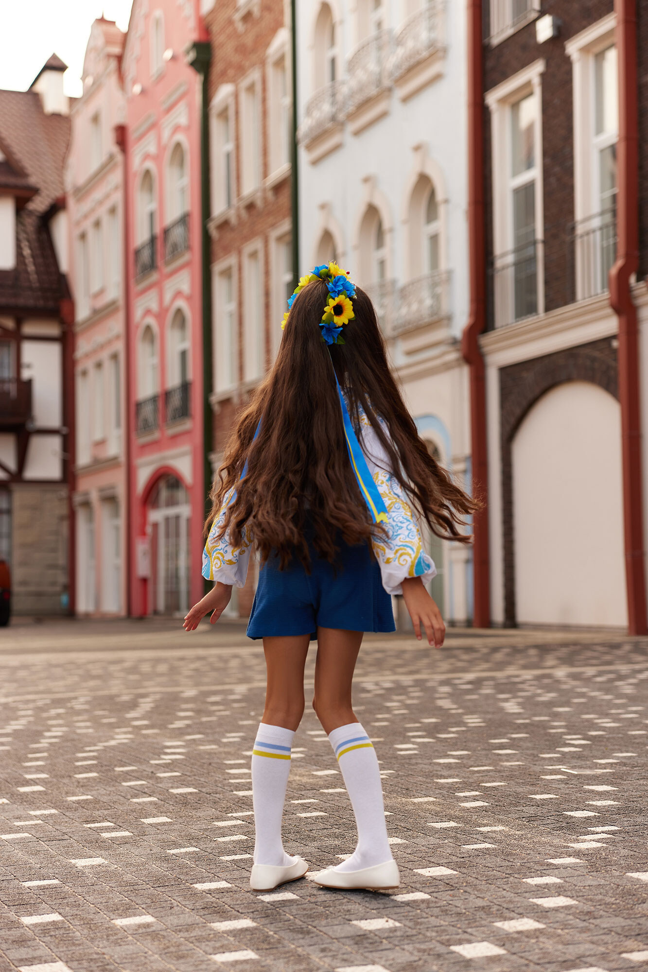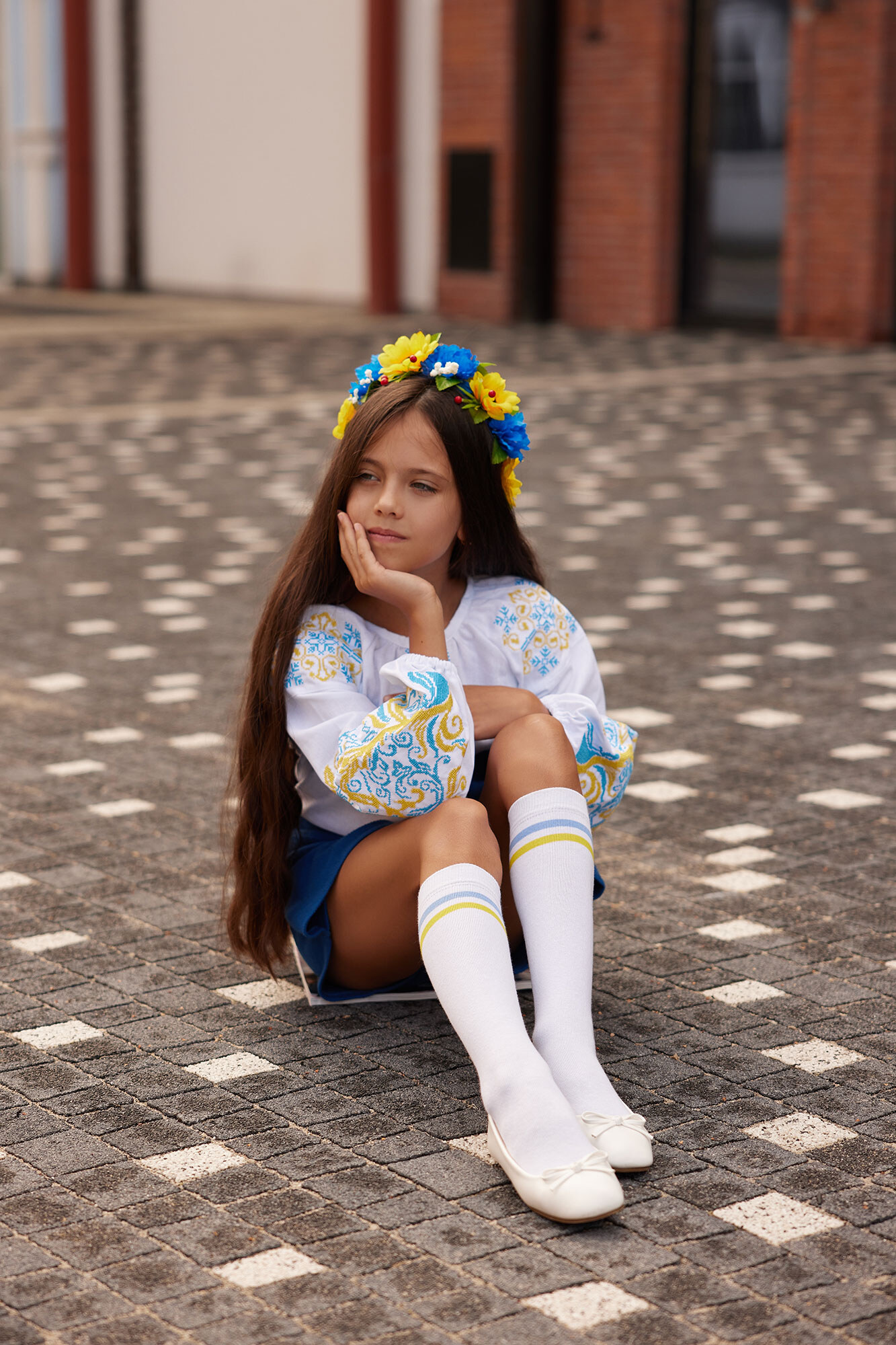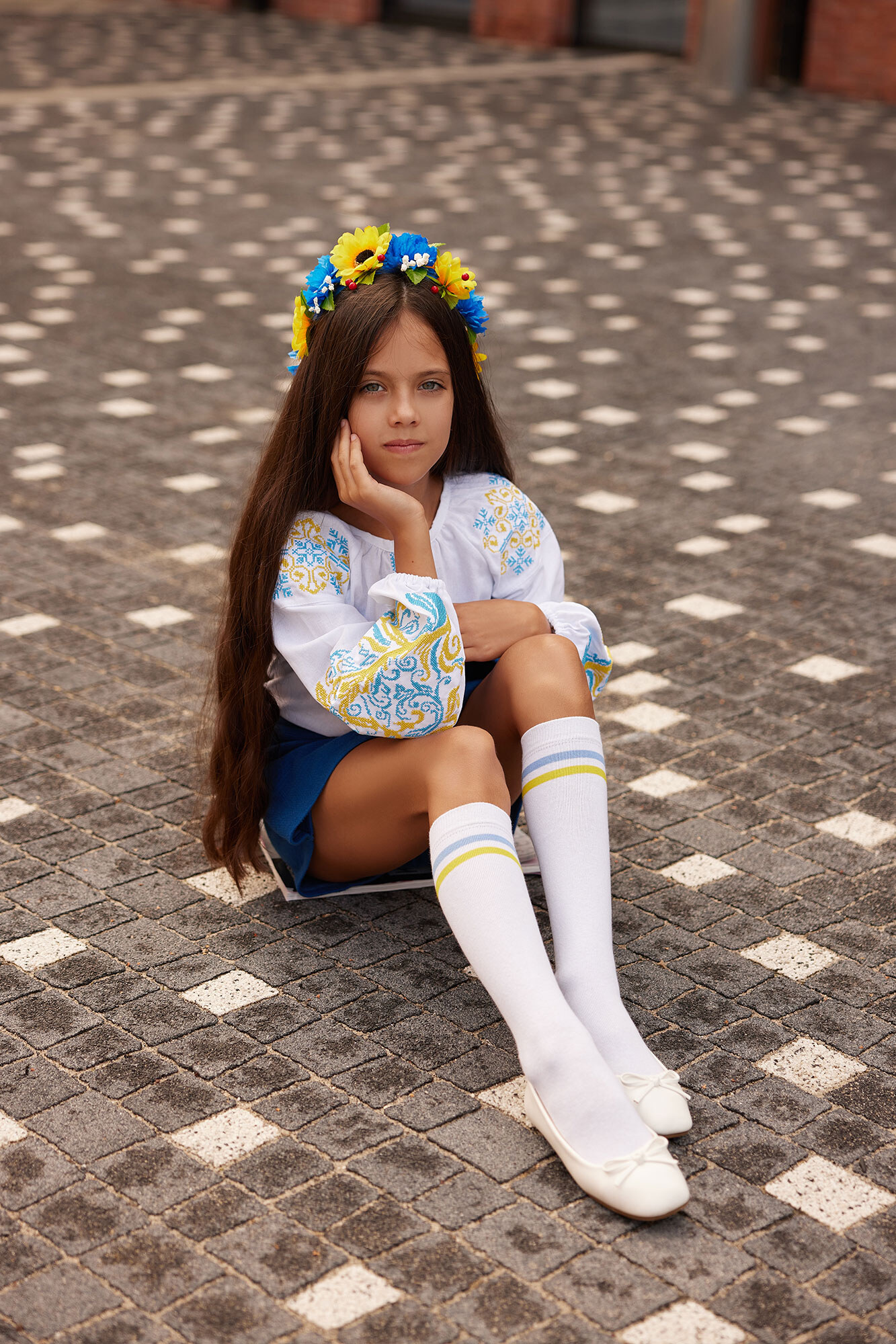 Children's knee-highs, white with yellow and blue stripes. M-SOCKS 2040286