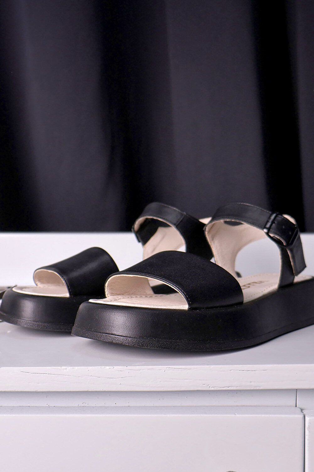 Czarne sandały na niskim obcasie, wykonane ze skóry naturalnej 4206146