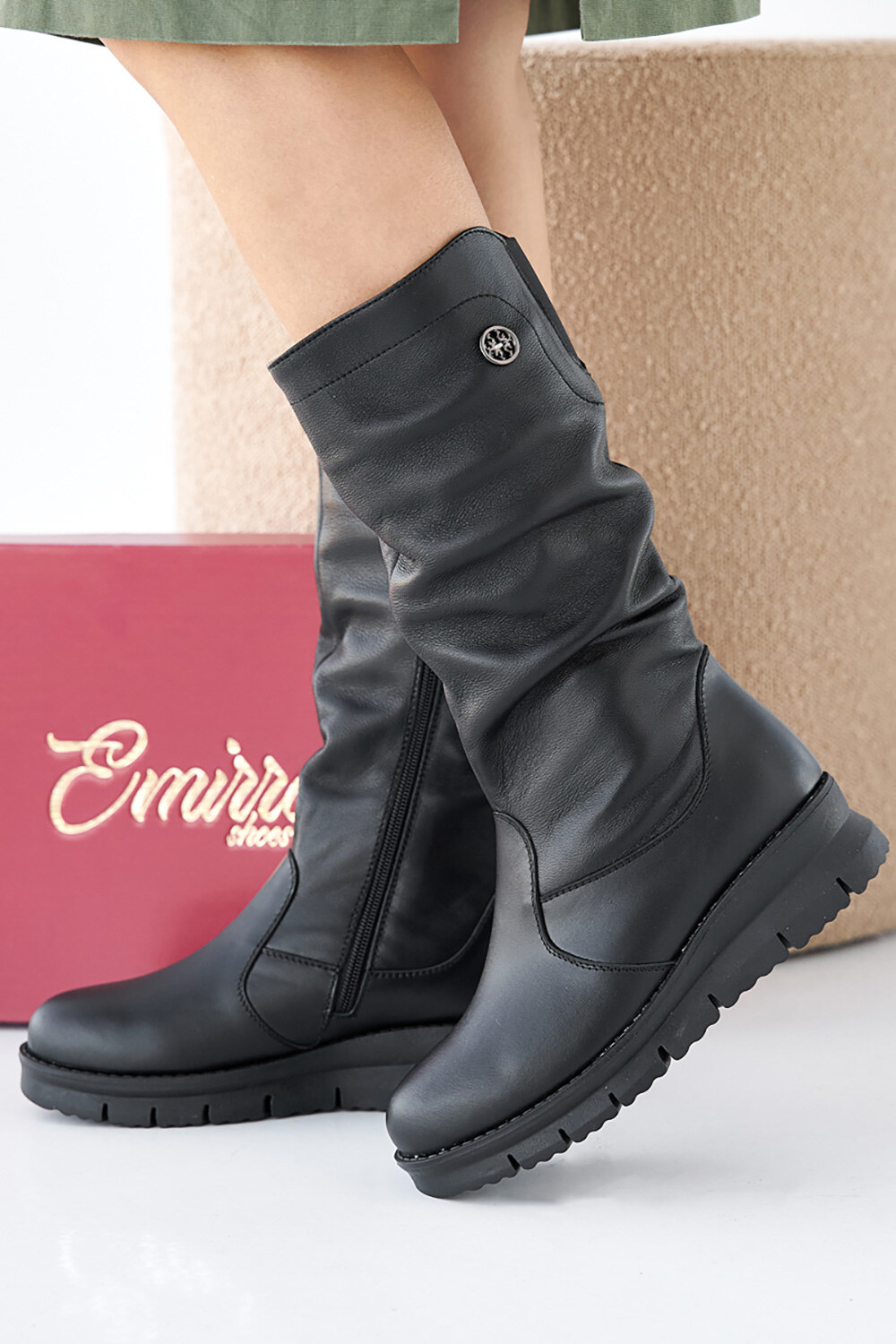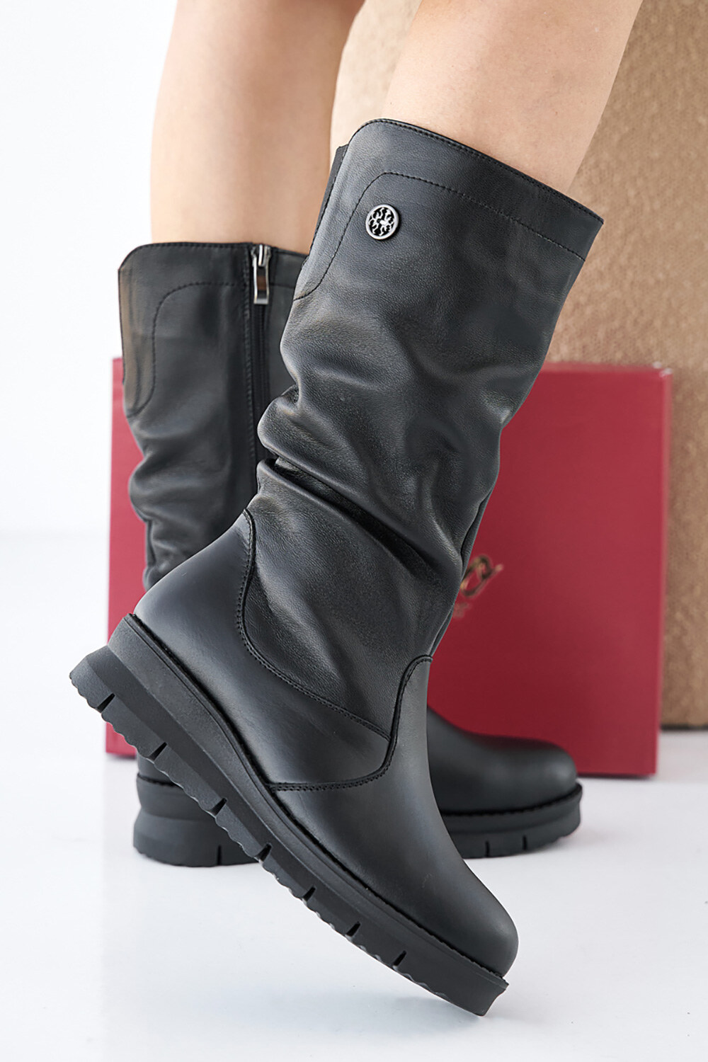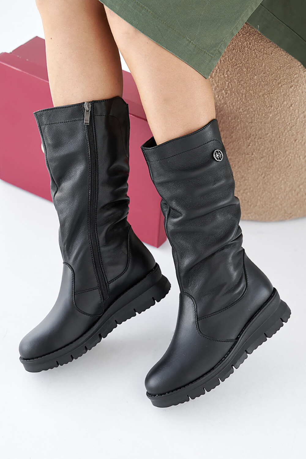 • Zimowe skórzane buty z szerokim i stabilnym obcasem to doskonały wybór.