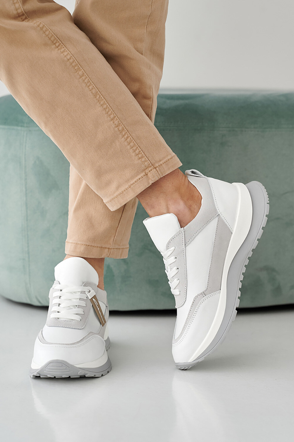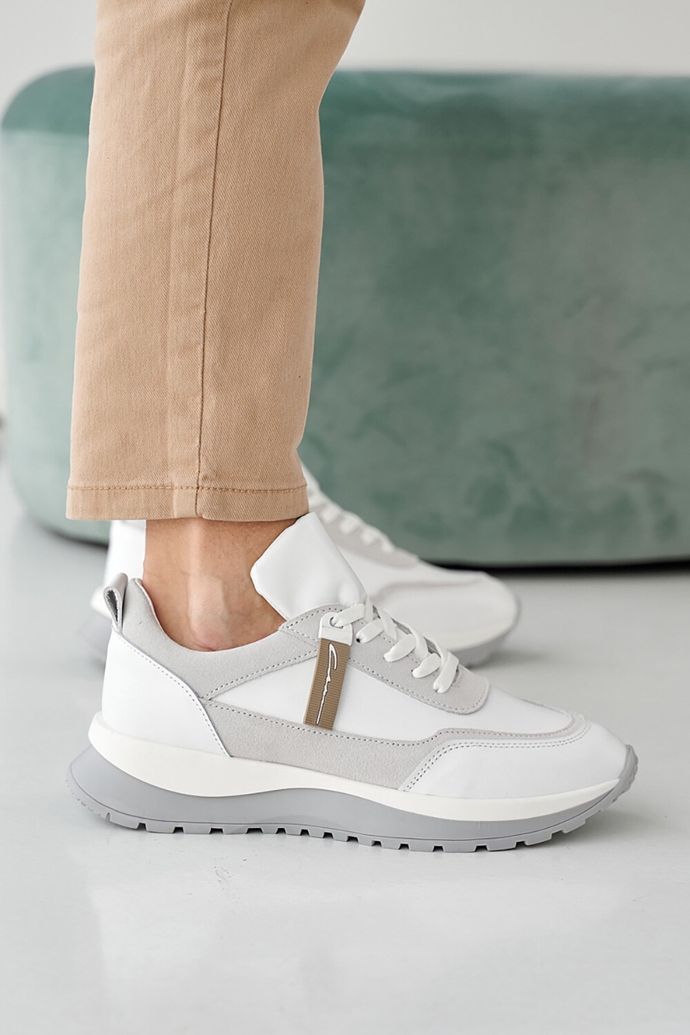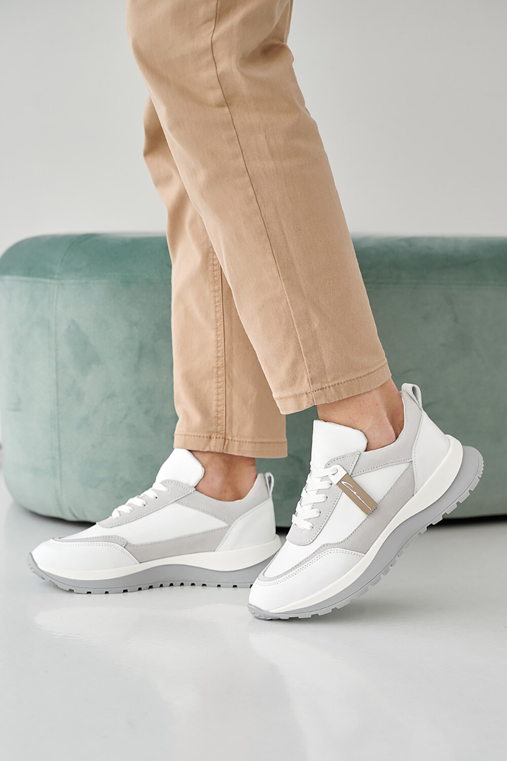 Sneakers mit Einsätzen aus grauem Wildleder