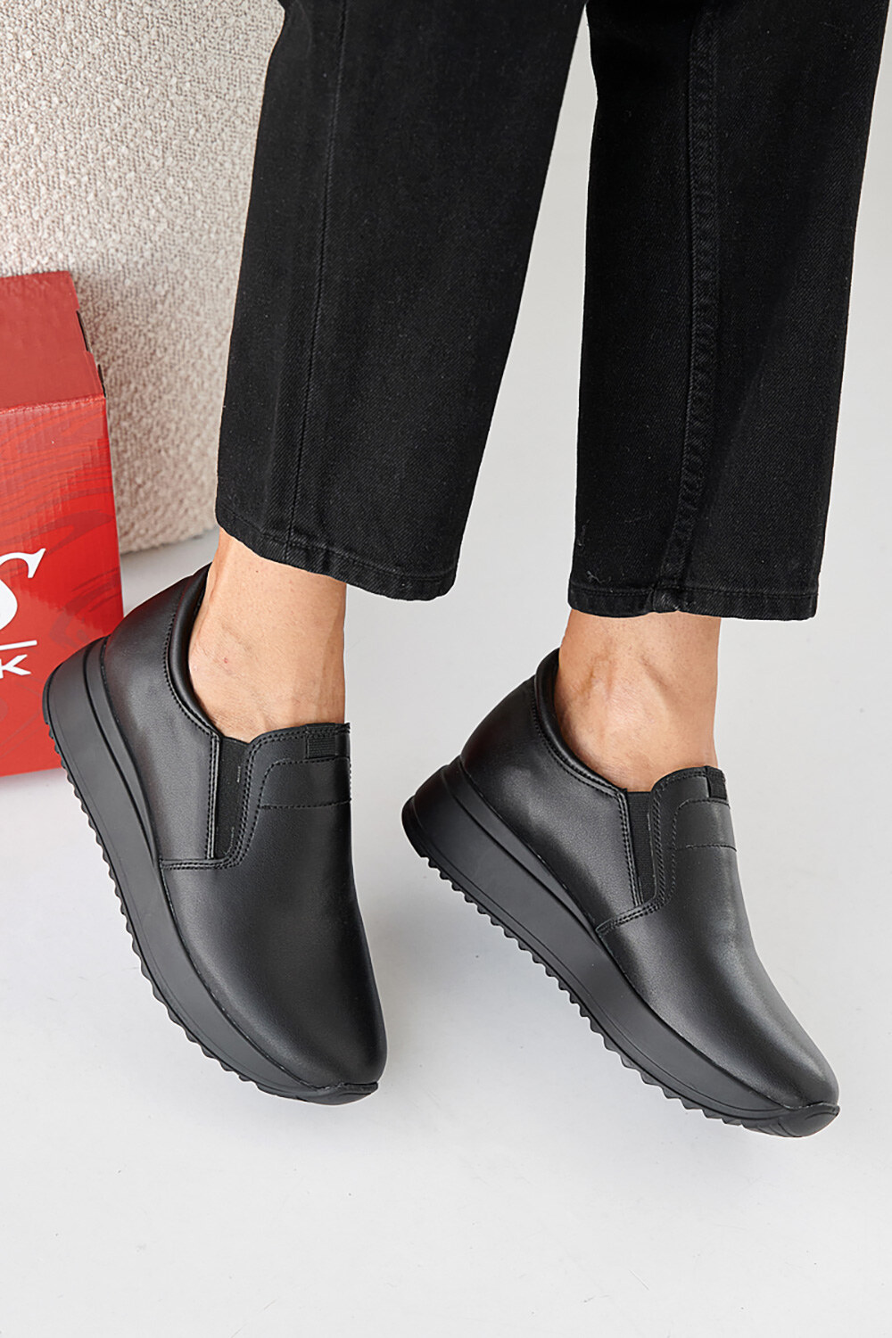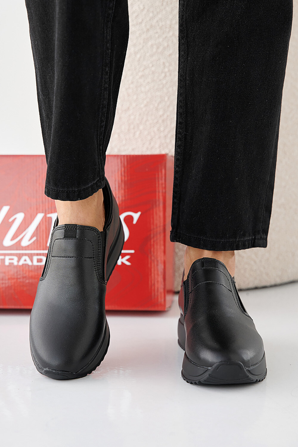 Damen-Sneakers aus schwarzem Leder fr Frhling und Herbst 2505328
