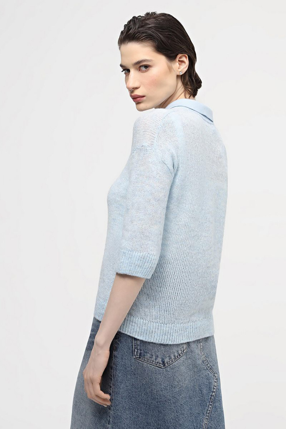 blauer Strickpullover für Damen