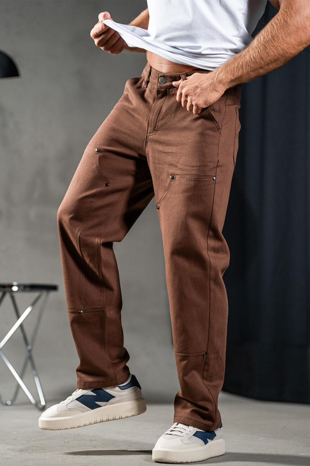 Men's straight pants made of cotton Jeans Casual Brown Teamv 8034036