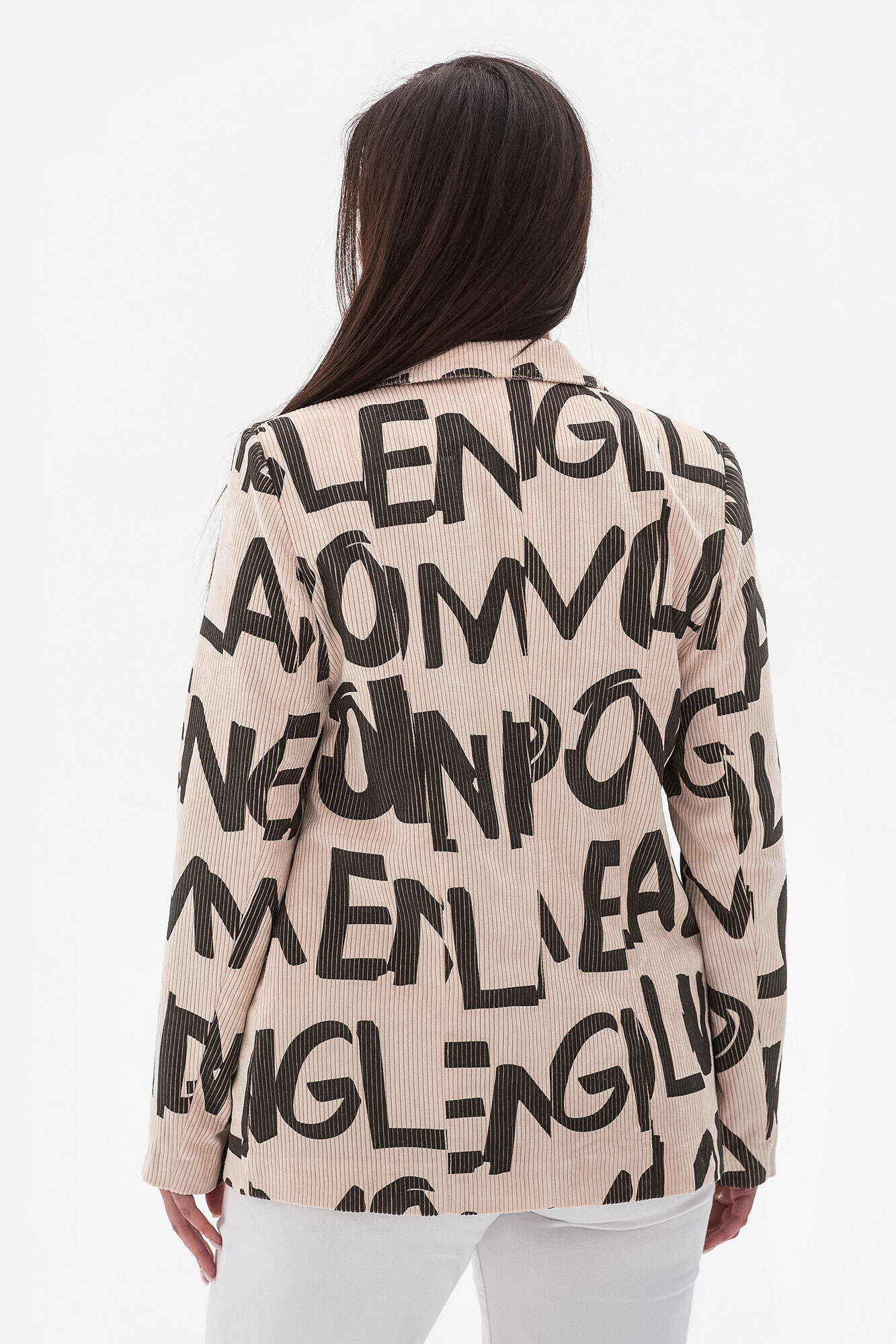 - Стильный пиджак из мягкой вельветовой ткани с характерной текстурой в виде рубчиков, придающих изделию изысканности и выразительности.