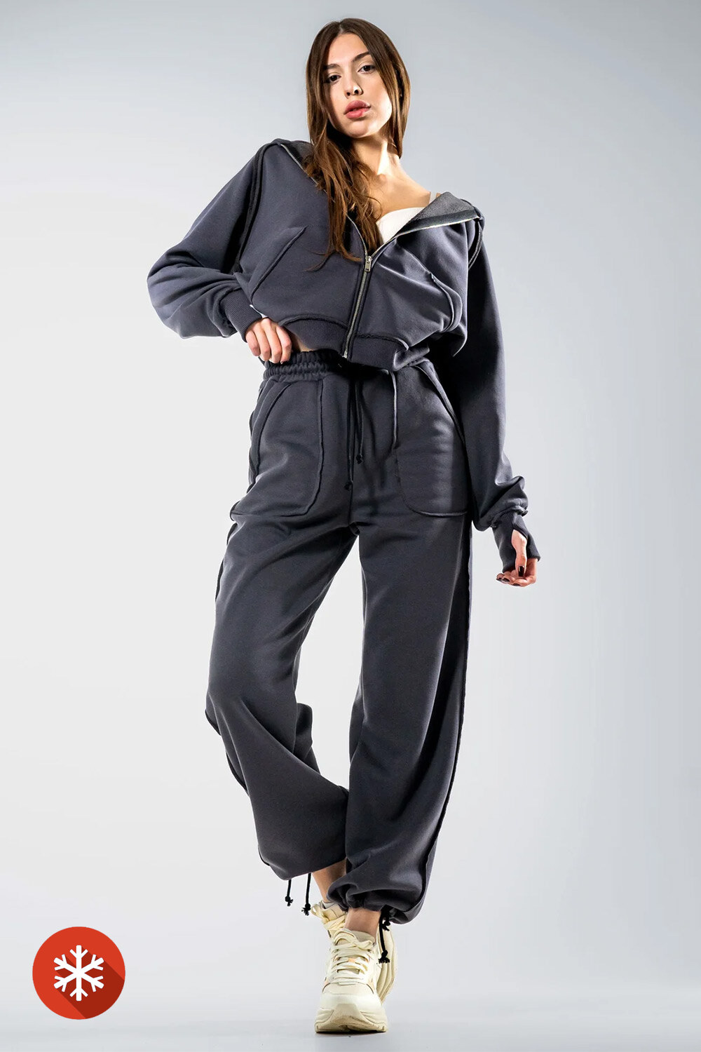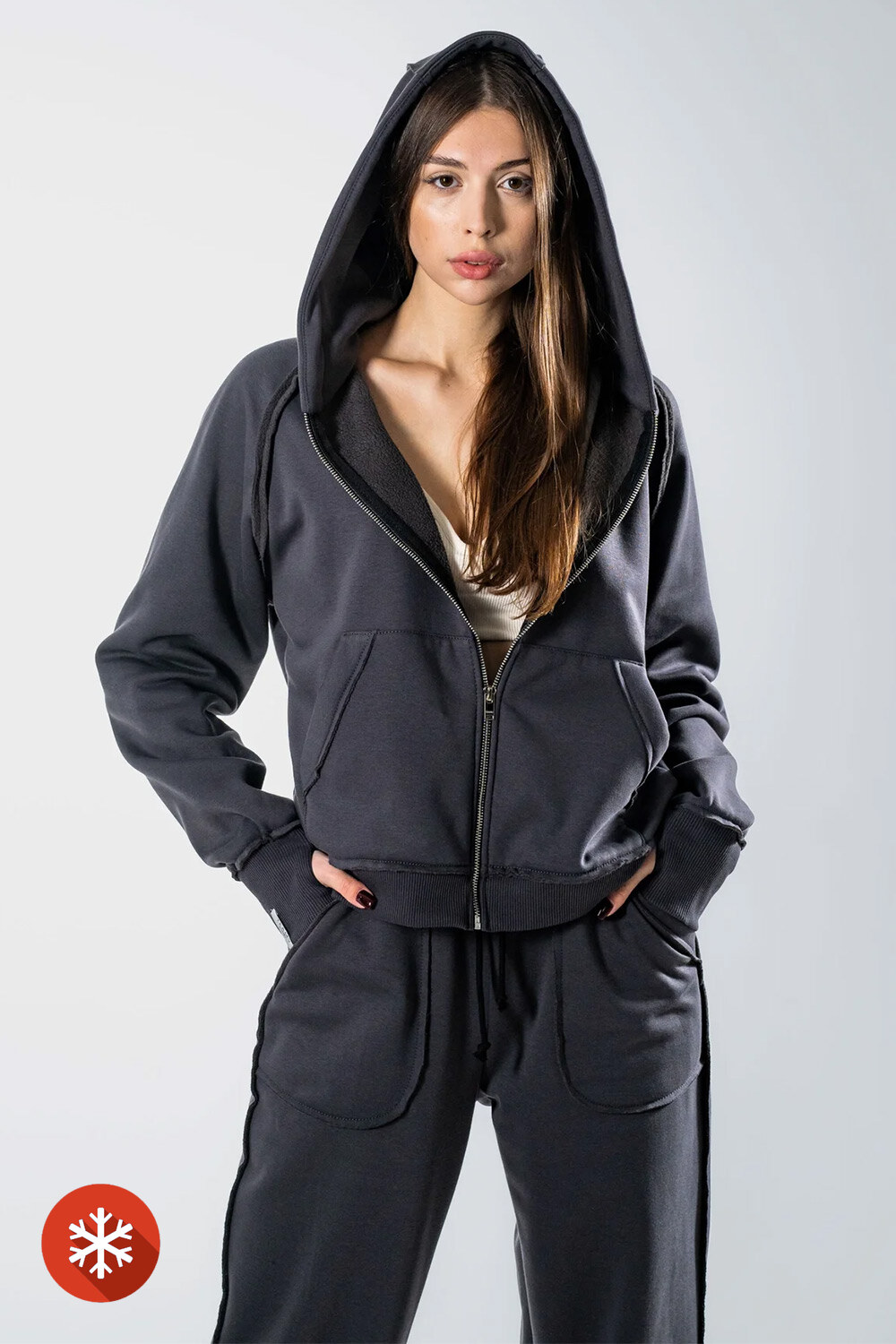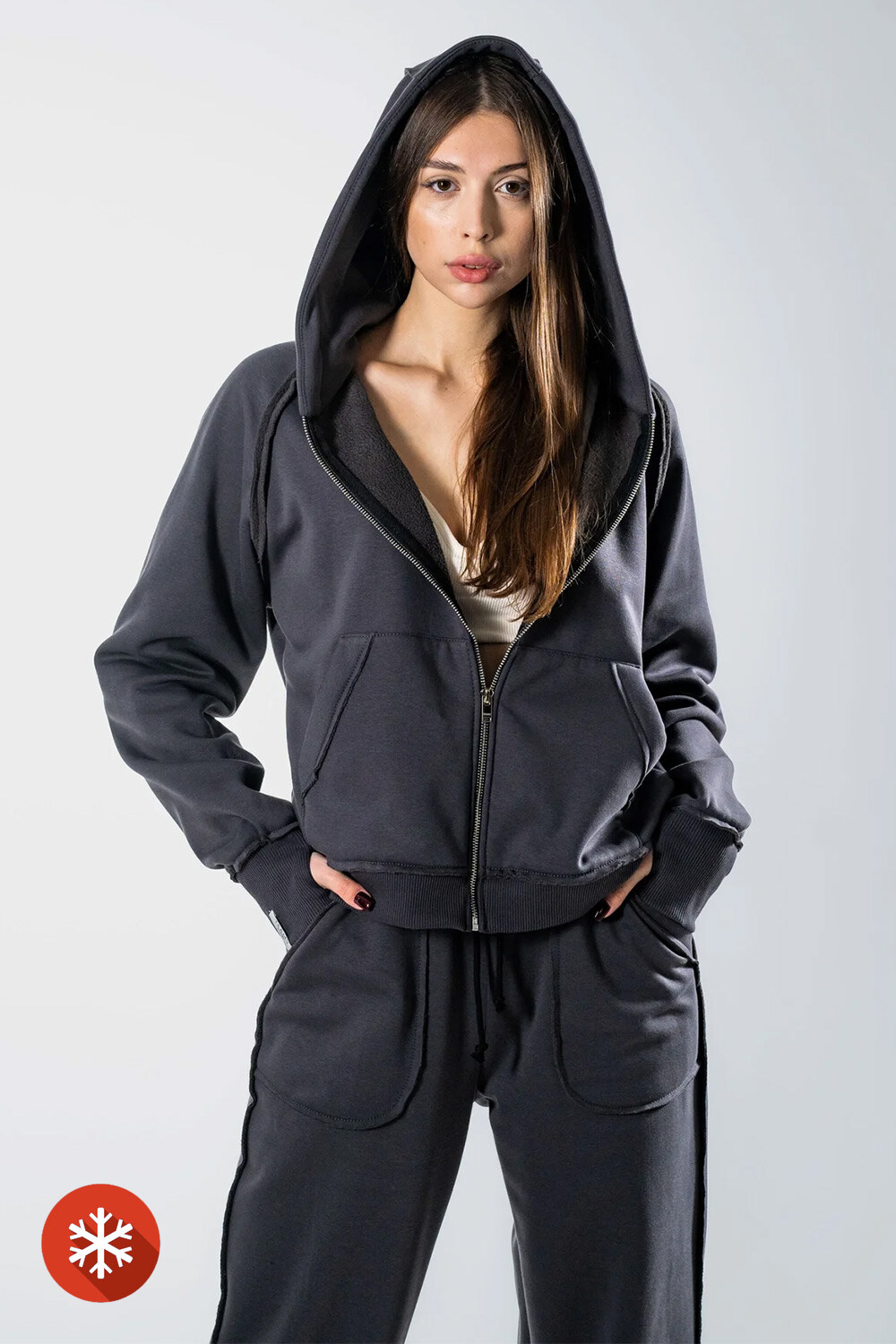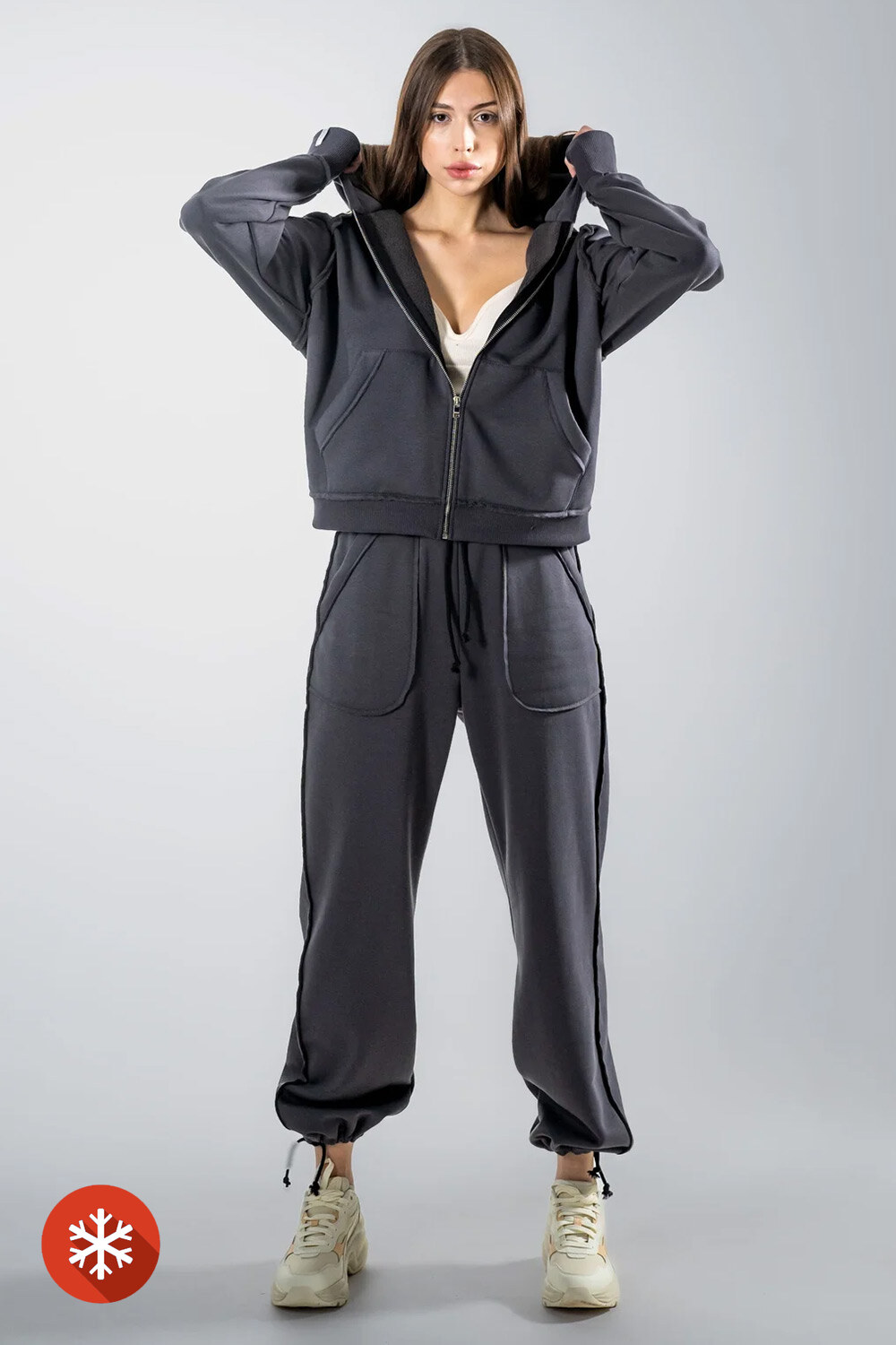 Warm women's tracksuit with zipper oversize Francis Graphite Teamv 8034302