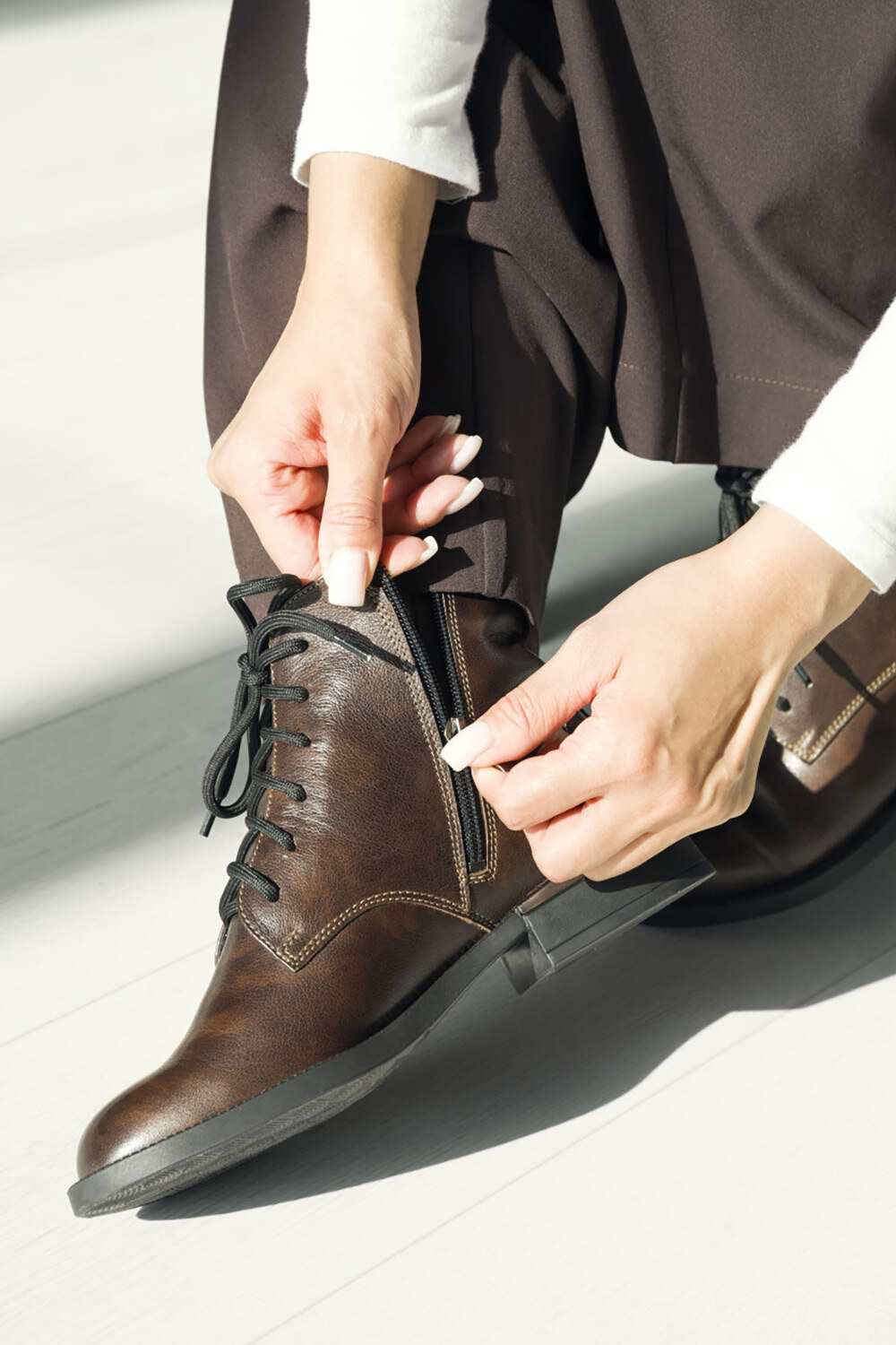 Женские кожаные классические классические демисезонные ботинки коричневого цвета 4207039