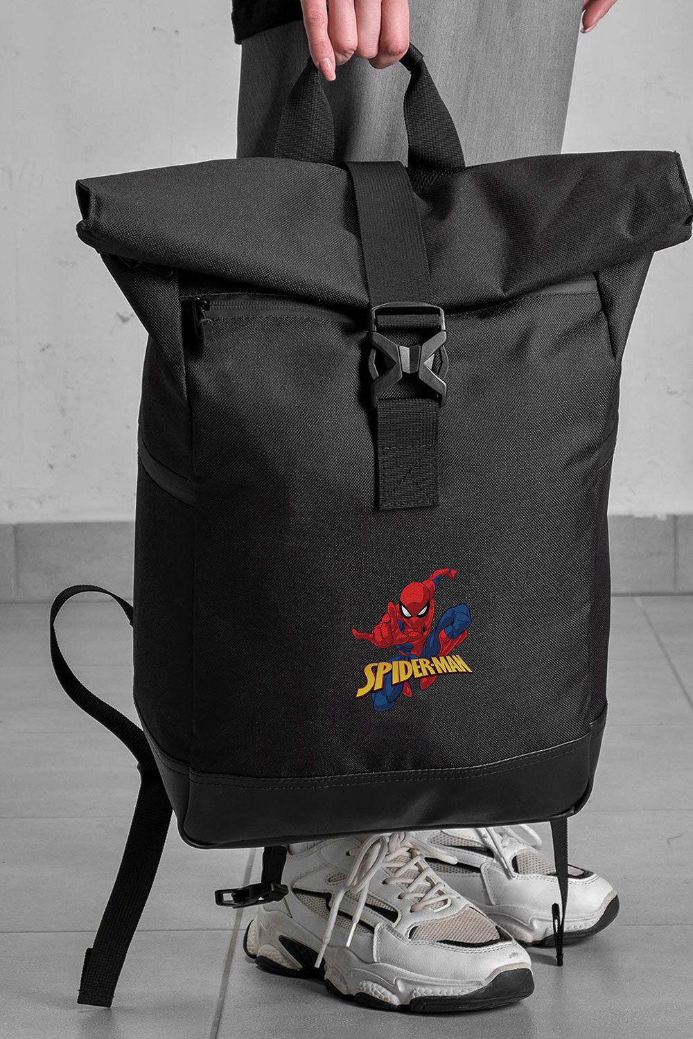Zwykły plecak szkolny Rolltop dla dziewczynek z czarnym nadrukiem Spider-Mana Without 8055281
