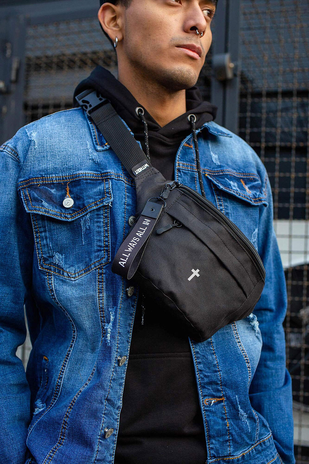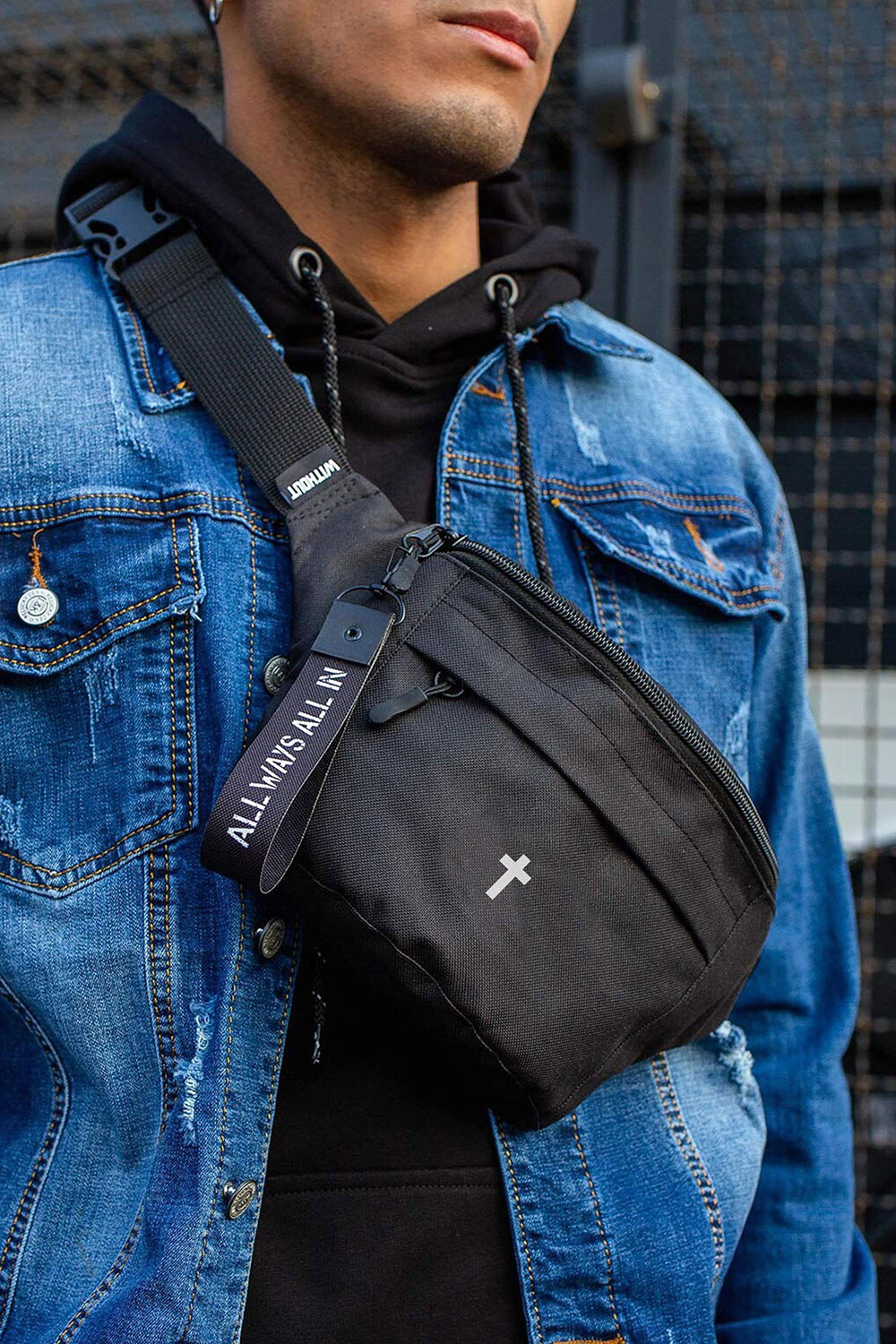 - Minimalistyczny branding w połączeniu z miejskim brelokiem, który można łatwo odpiąć i używać z innymi elementami odzieży.