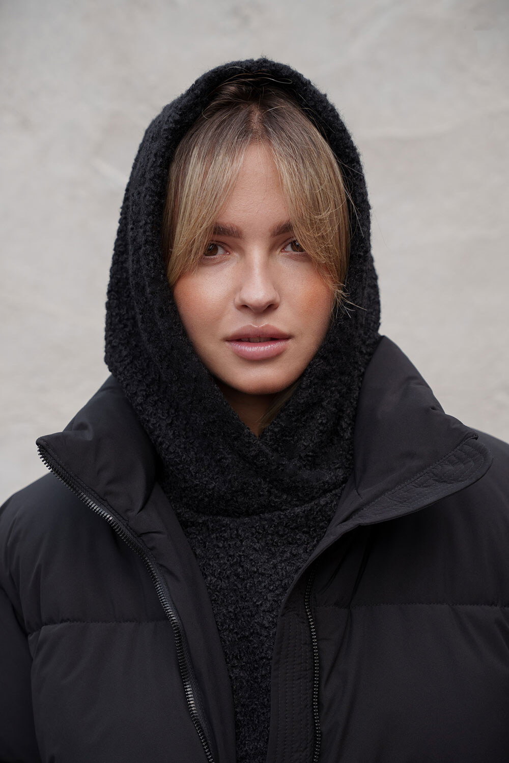 - Универсальный дизайн капюшона-капора позволяет легко носить его с любой одеждой, а удобная форма обеспечивает надежную посадку.