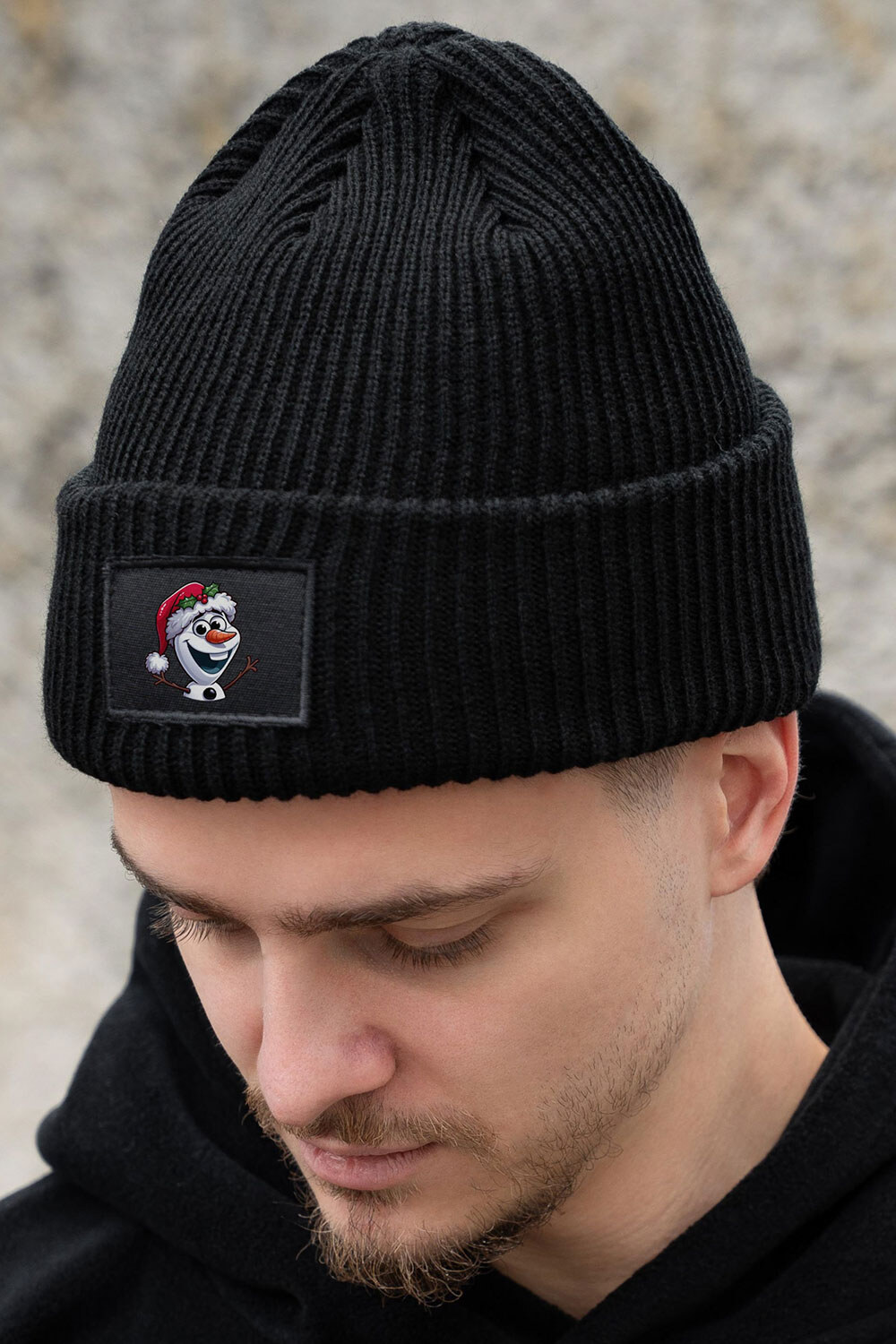 Warme Herrenmütze lang gestrickt Docker Mütze mit Olaf Dominic Aufdruck Schwarz Without 8056075