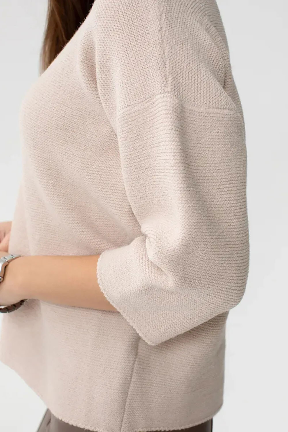 - Джемпер має вільний силует, модель добре тримає форму завдяки властивостям пряжі і плетіння.