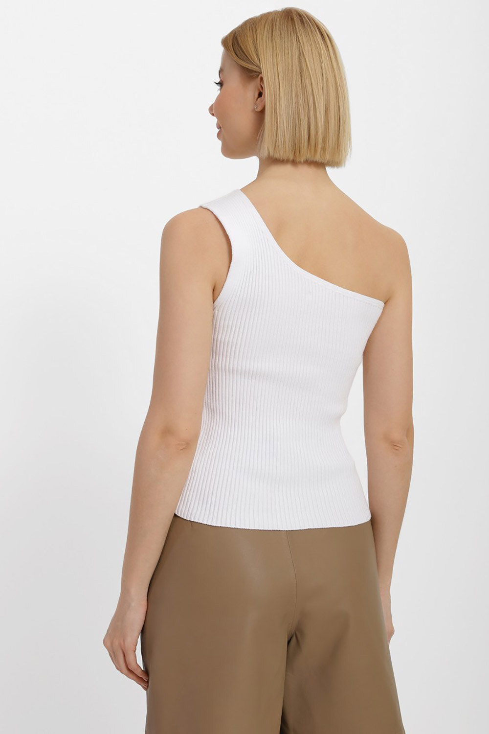 - Майка вязаная на одно плечо, выполнена из мягкой вискозы с добавлением стрейча, что обеспечит хорошее сохранение формы изделия.