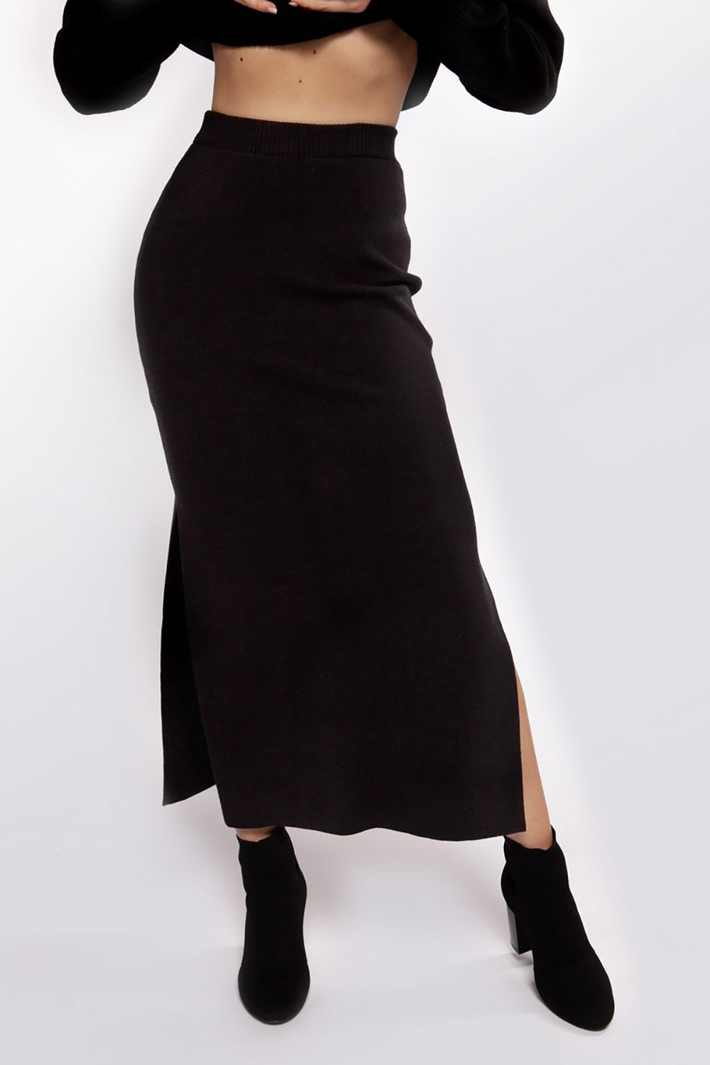 - Длинная вязаная юбка выполнена из вискозной пряжи с содержанием эластана, что помогает поддерживать хорошую посадку и прилегание по фигуре.