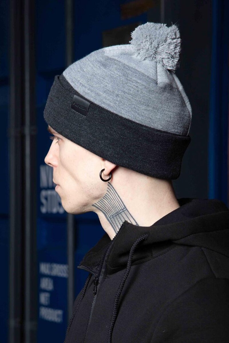 Теплая шерстяная шапка с помпоном и отворотом Custom Wear 8025639