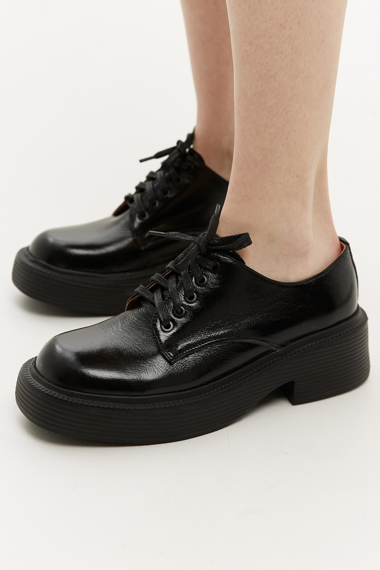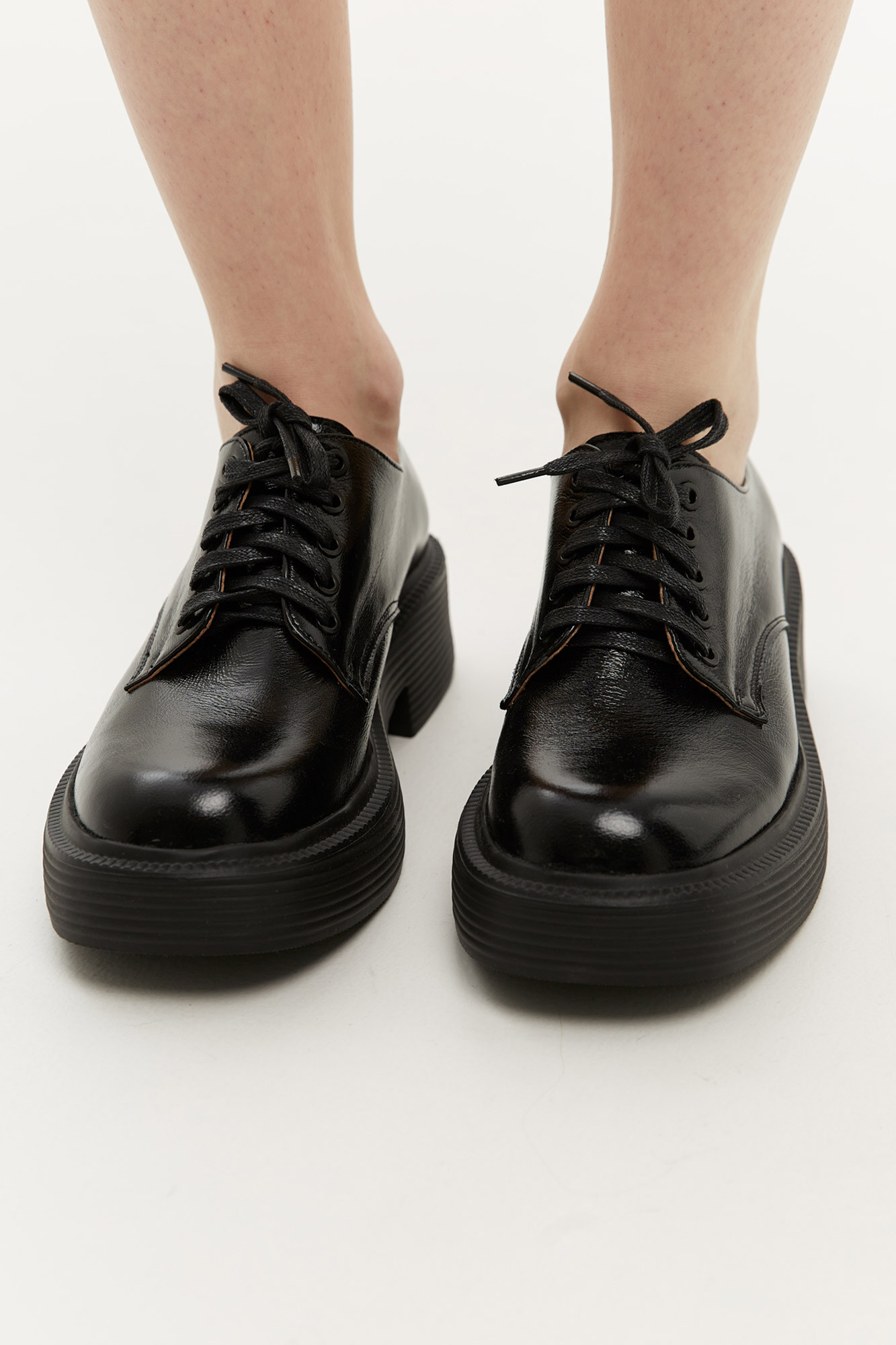 Klassische Damen-Lederschuhe mit niedrigem Absatz