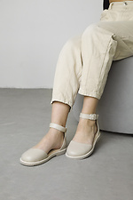 Beigefarbene Damenschuhe mit breiter runder Spitze aus echtem Leder