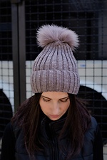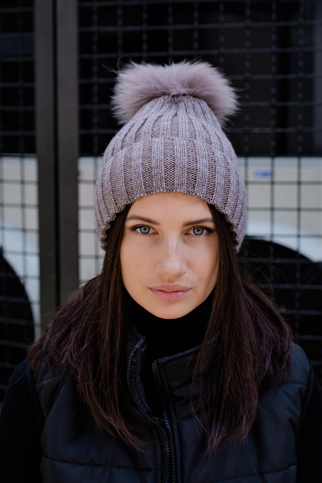 В'язана зимова шапка з хутряним помпоном та флісовою підкладкою Without 8048804