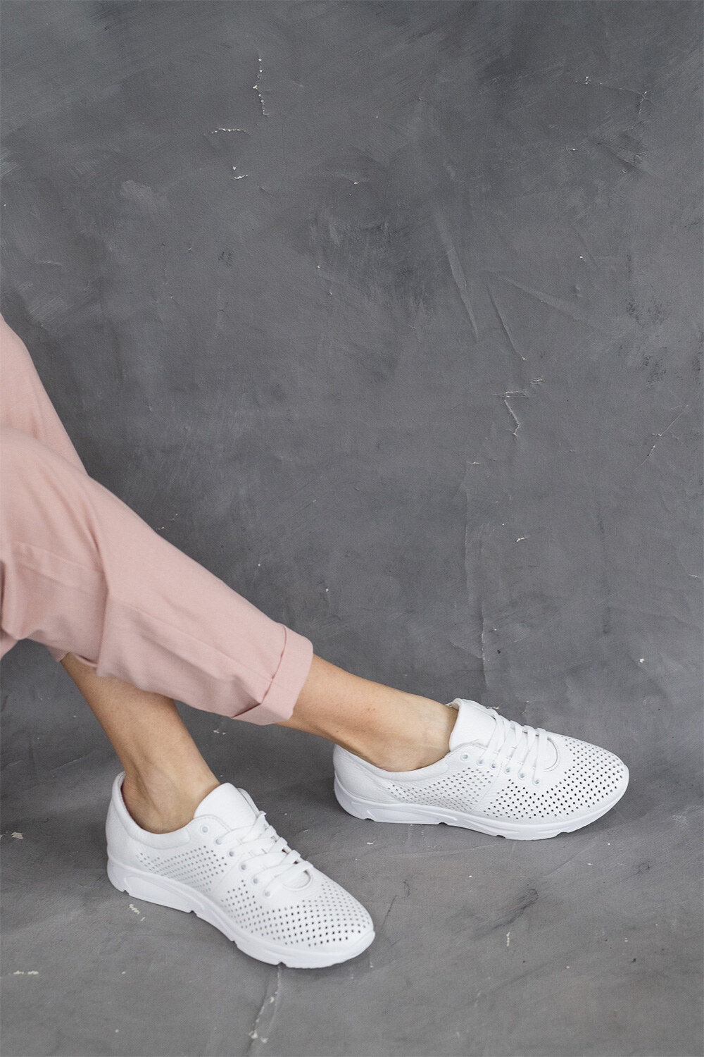 Damskie trampki z perforacją - skóra naturalna